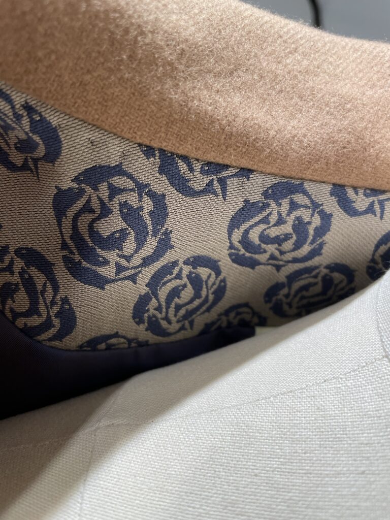 後ろの襟ぐり見返しに淡水魚(鮎)