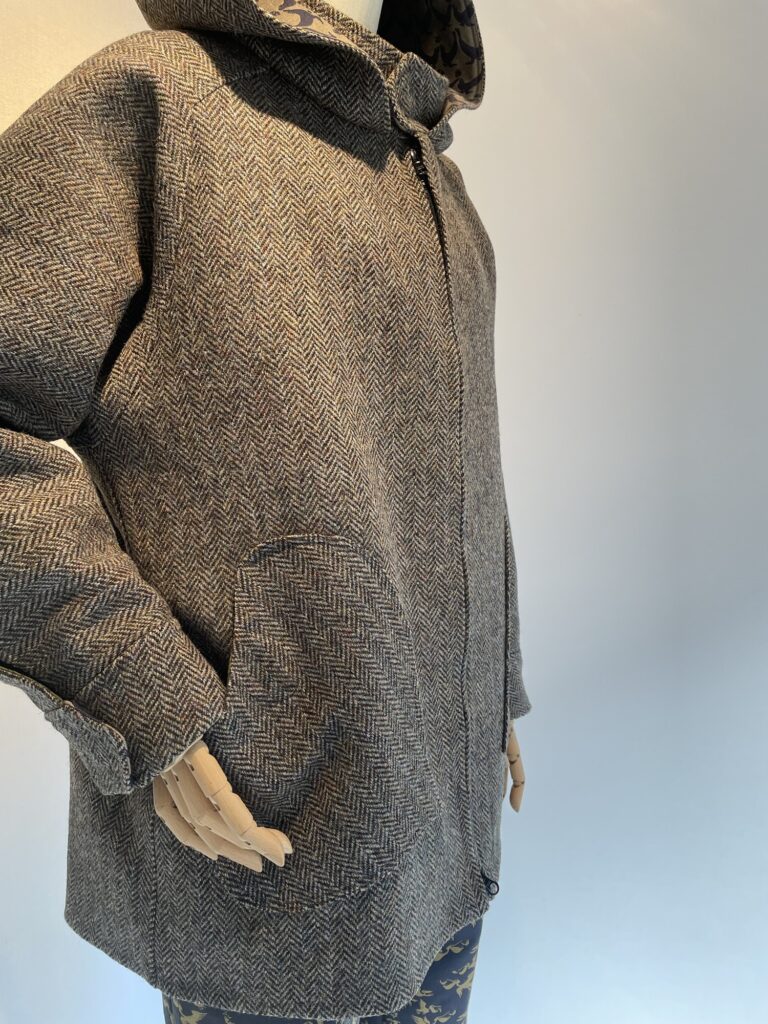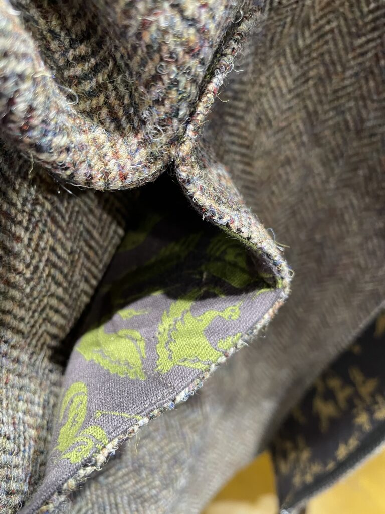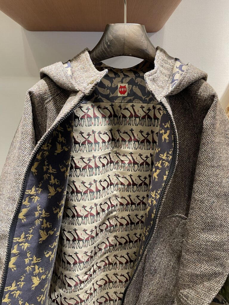 ポケット裏と内袖裏に鶴