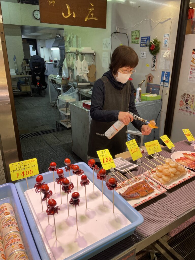 ちょっと悲しい気持ちになりつつもめっちゃ美味しい錦通りのタコ まあ2本は食べちゃうよね