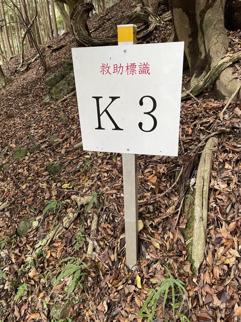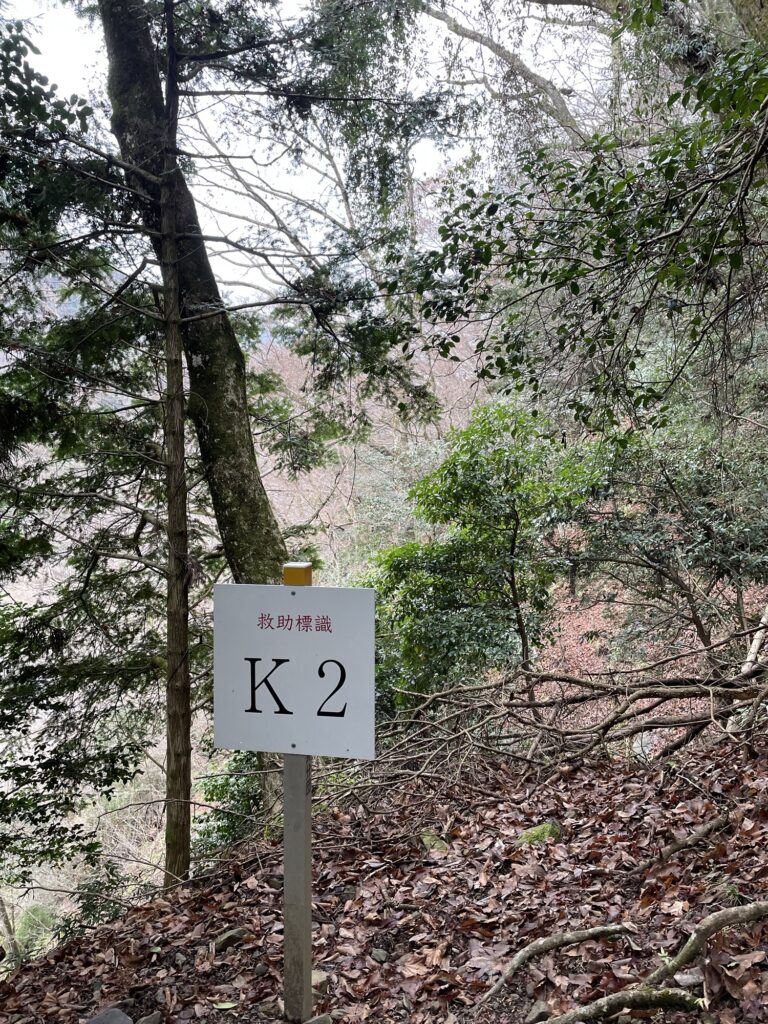 水道管で作られた手すりがロープに変わり途中切れてるところもございましたけども めちゃ頑張って救助要請ポイント2まで来ました 初めて見たわこんな標識