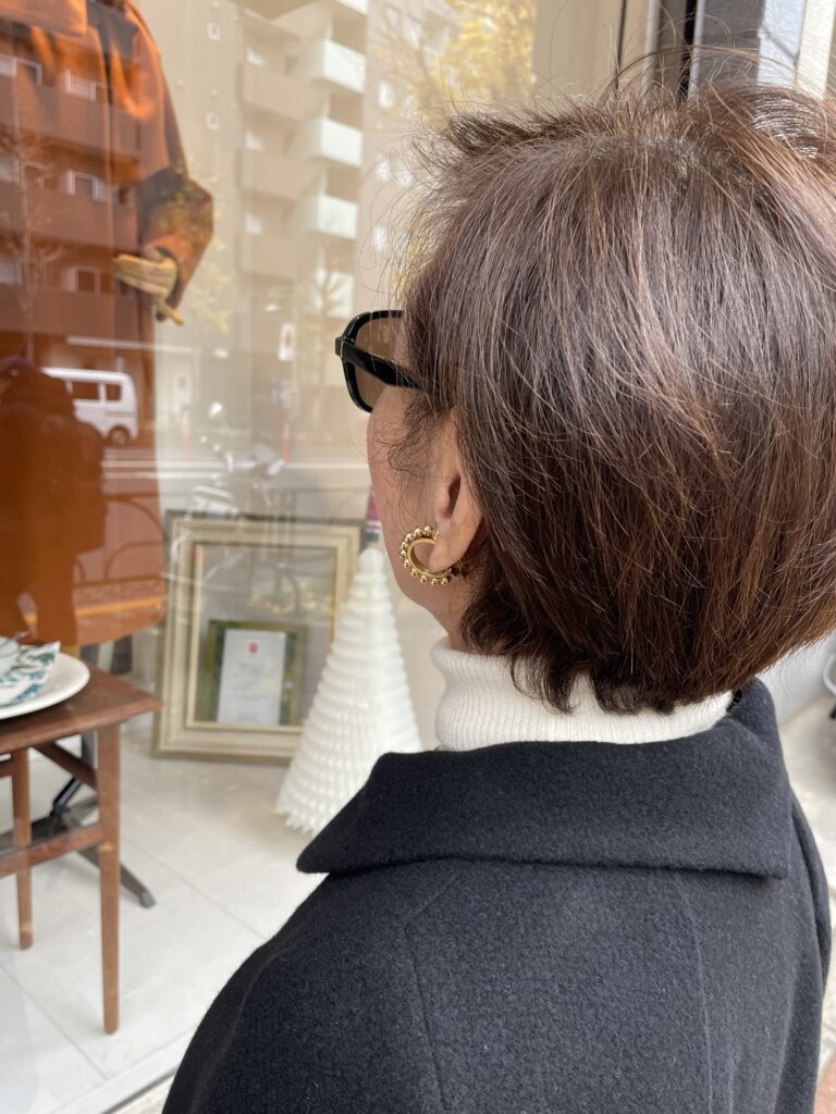 白のタートルをお召しくださってボタンが映えますありがとうございますーーー!